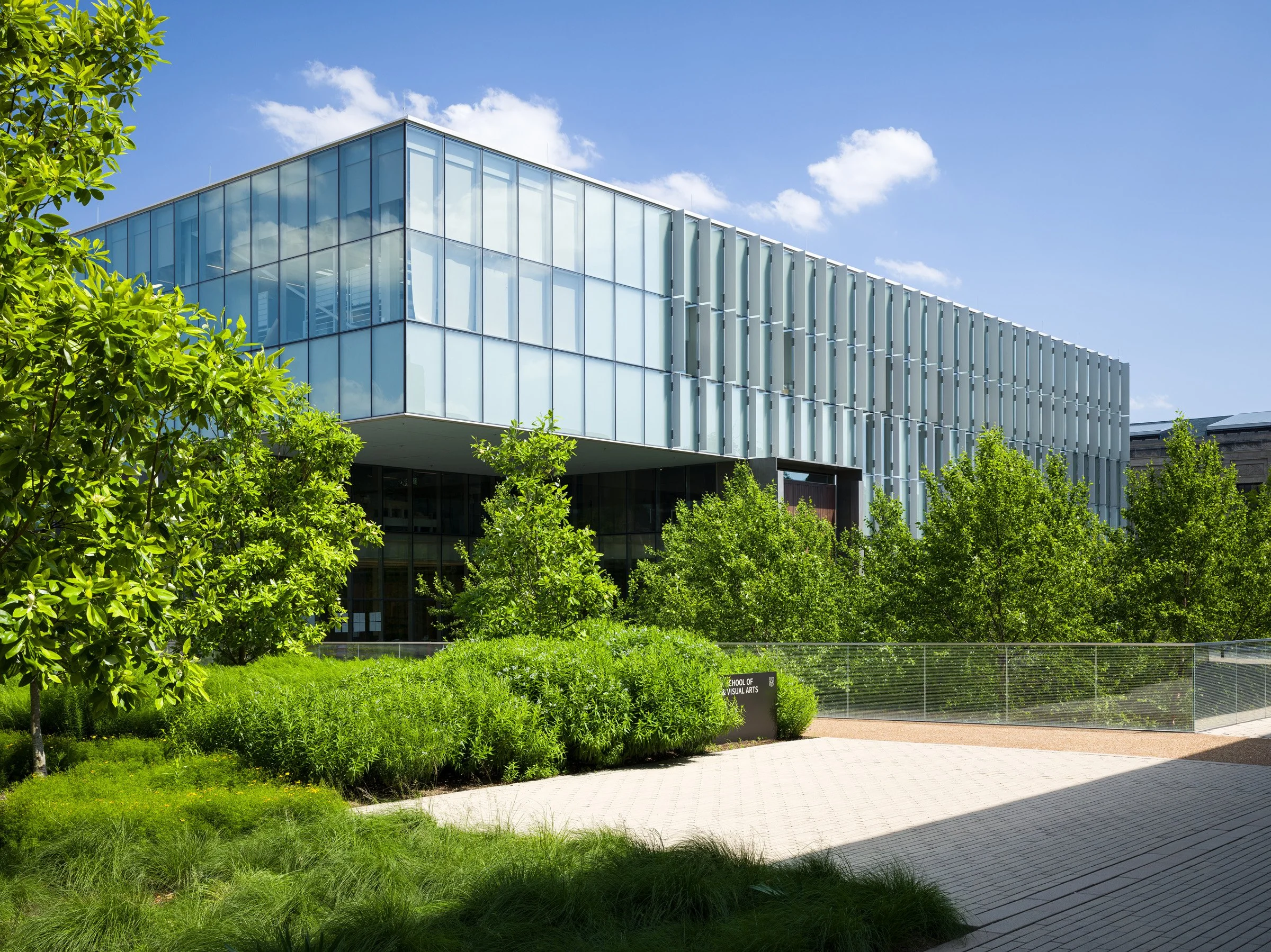 The Sam Fox Arts Center at Washington University in St. Louis consolidated the university's previously scattered visual arts and design programs into a cohesive academic complex. It marked the return of Pritzker Prize-winning architect and former WashU faculty Fumihiko Maki, who designed the adjacent Steinberg Hall in 1960. His 2006 design added two new buildings, the Mildred Lane Kemper Art Museum and Walker Hall (pictured), which link to older renovated halls, framing a central plaza and creating a cohesive center for what was then rechristened as the Sam Fox School. The spare, rectilinear forms clad in limestone and glass, in contrast to the university’s predominant Collegiate Gothic style, demonstrate Maki's synthesis of Western and Japanese functionalist traditions while maintaining continuity with his earlier work on campus.