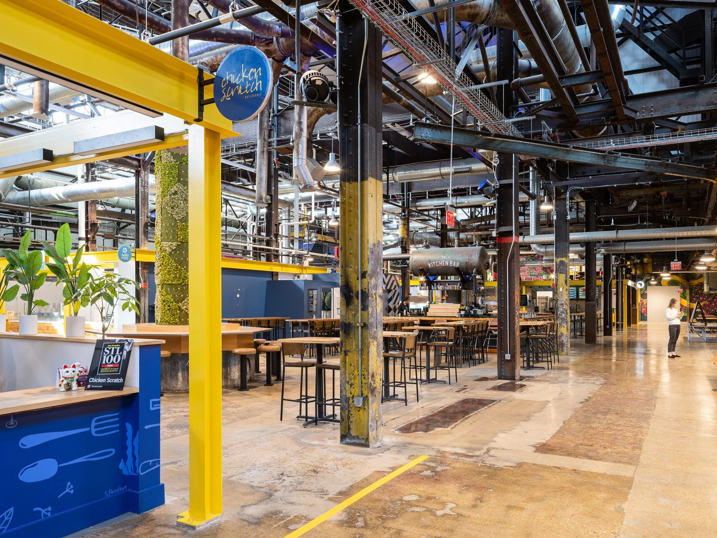 The City Foundry is a complex, multi-phase redevelopment that transformed a 15-acre industrial parcel into a mixed-use district in Midtown. The initial phase focused on the adaptive reuse of the original foundry building, creating a popular destination with a food hall, retail shops, offices, and entertainment venues like Alamo Drafthouse and Puttshack. Giant sand hoppers, melting furnaces, and overhead cranes were preserved inside the food hall as decorative elements, connecting the building's new commercial purpose to its manufacturing past. Subsequent phases expanded the site, introducing more office and residential space, including the One Foundry Way luxury apartments, and the city’s first mass timber office building. These structures complete the development, establishing a new residential and commercial neighborhood amidst the broader revitalization of Midtown.